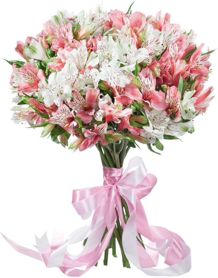Этот изысканный букет из нежных, трогательных розовых и белых альстромерий прекрасно подойдет для свидания с девушкой, когда ваши отношения только лишь начинаются, так как на языке цветов такое цветовой сочетание означают зарождение чувства, симпатию, искренность и дружбу. Букет так же можно смело дарить друзьям, коллегам и близким людям.